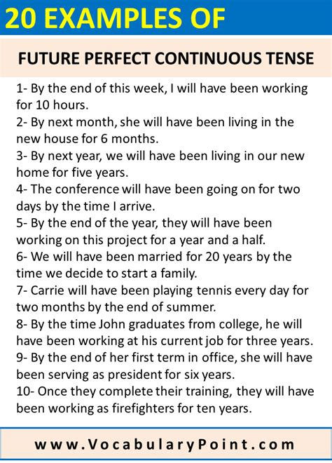 20 sentence of future perfect continuous tense