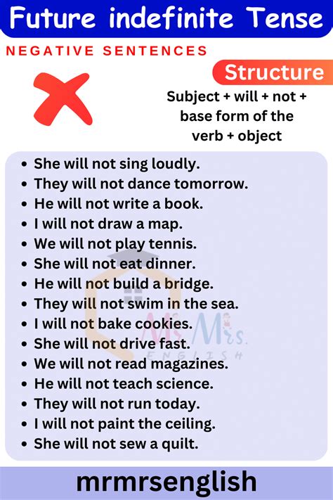 future indefinite tense negative sentences