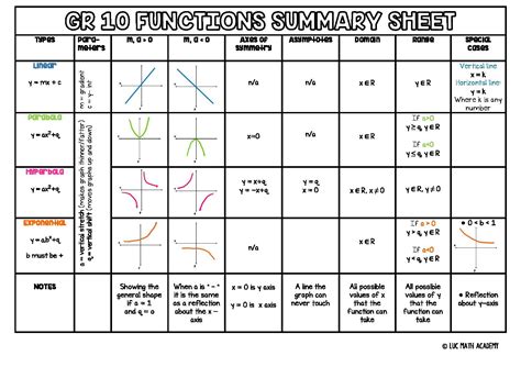 grade 10 functions summary