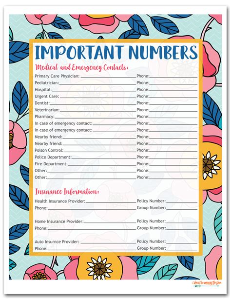 important contact numbers template