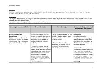 individual education plan example adhd