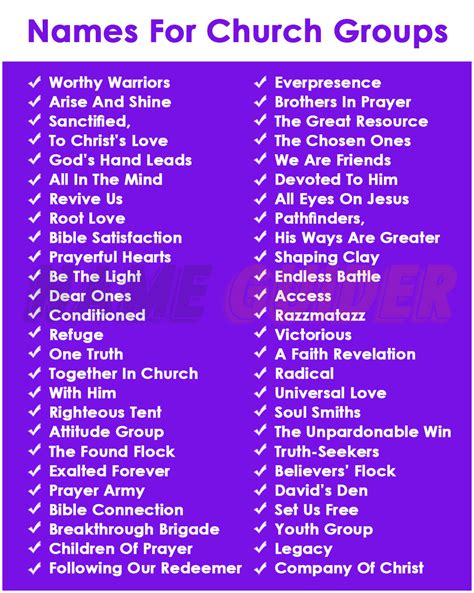 names of church groups