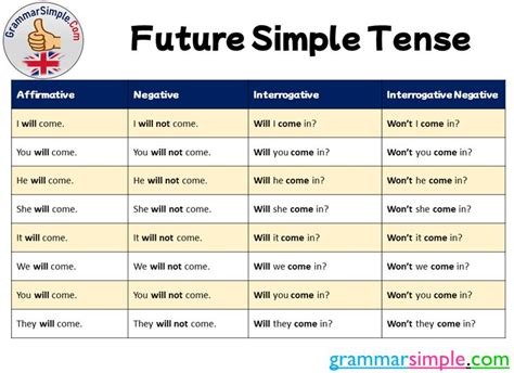 simple future tense structure affirmative negative interrogative