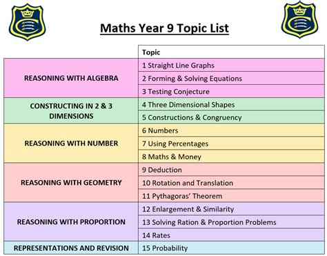 year 9 maths topic list uk